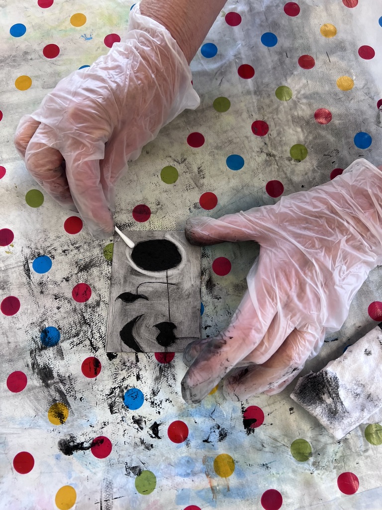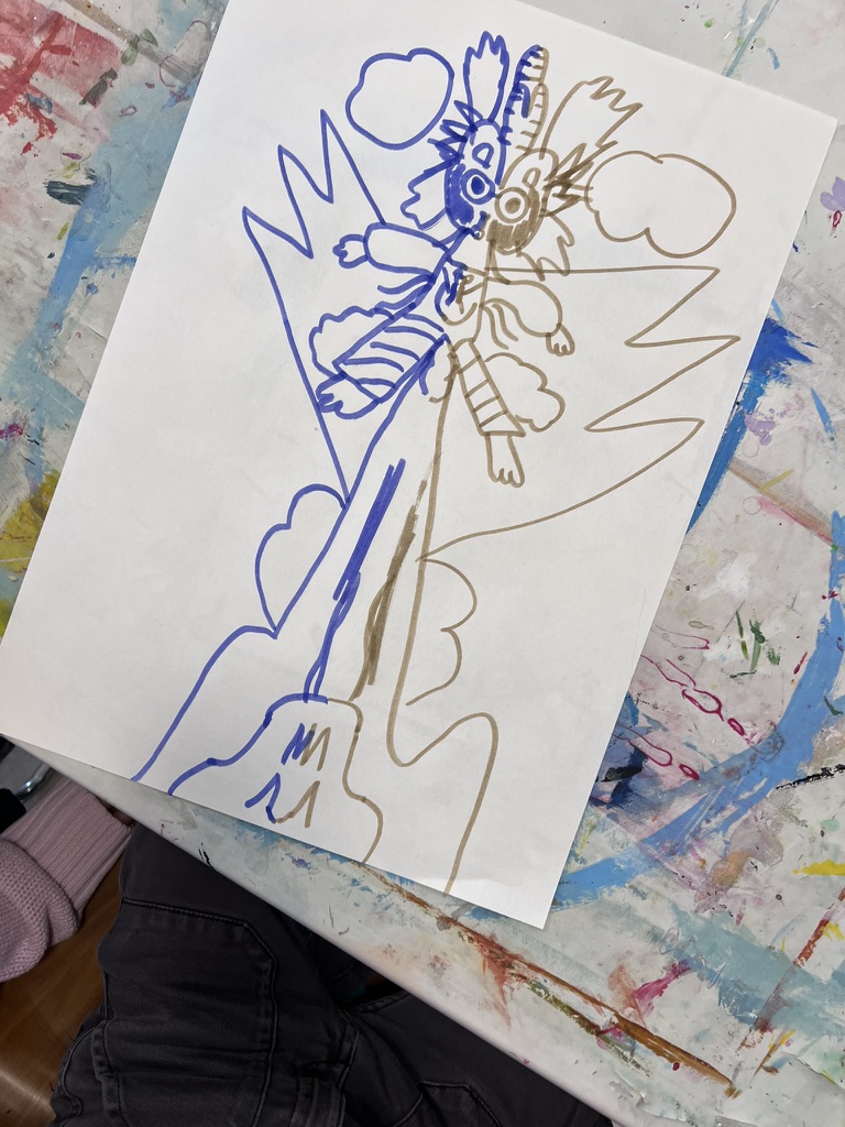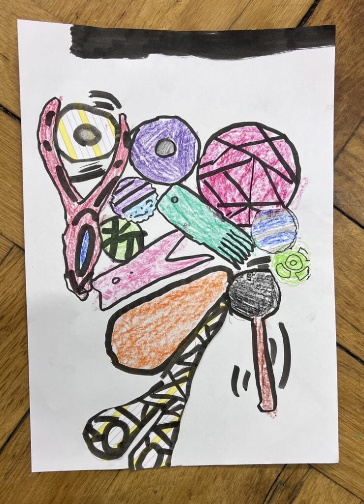 Drucken, Klecksen, Kleben, Zeichnen, Tonarbeiten, Pinseln, Erforschen, Schneiden, Malen, Filmen, Kneten, Erfinden, Formen, Gestalten, Stempeln, … und was dir sonst noch einfällt!